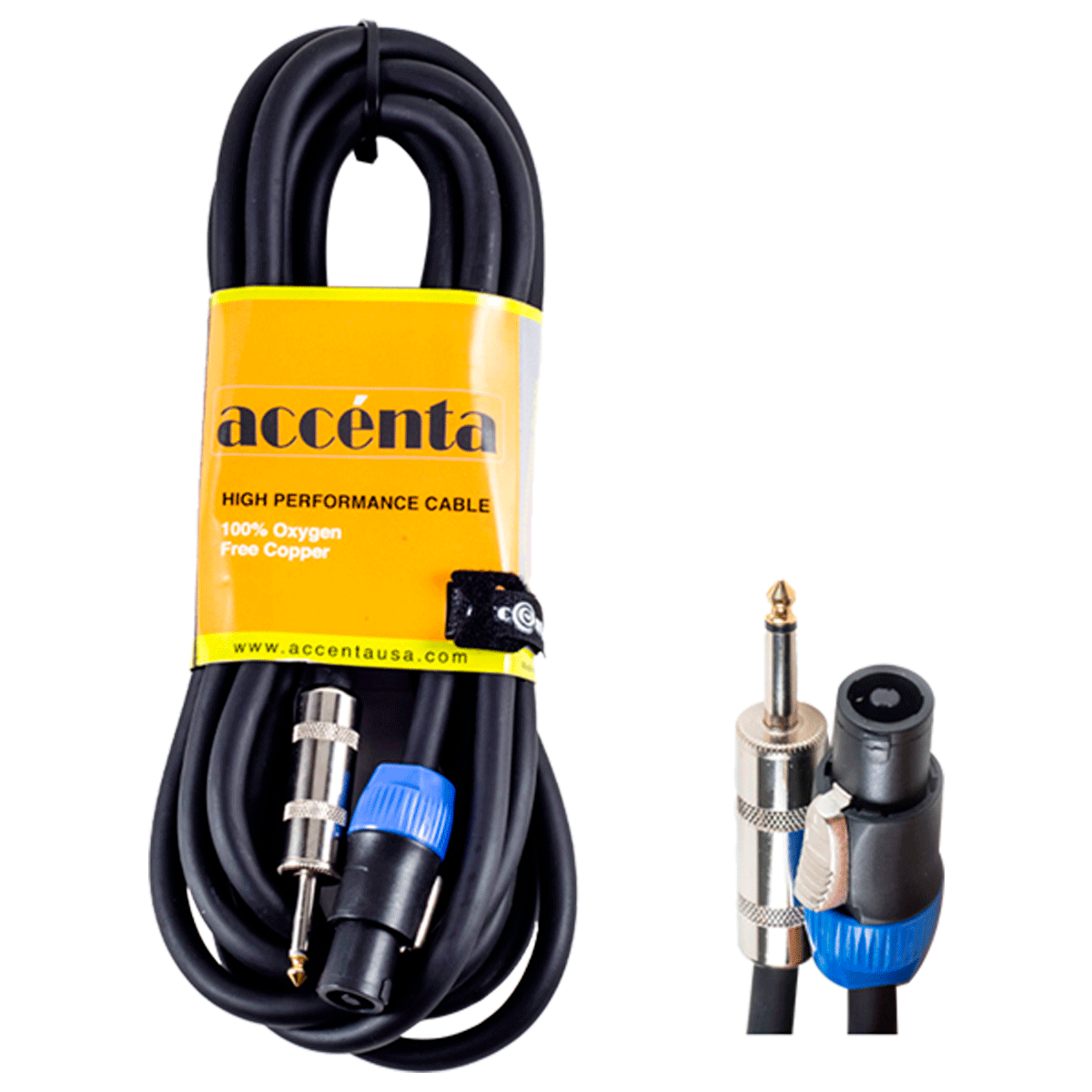 Cable Accenta para parlante tipo speakon a plug 1/4 de 25 pies, libre de oxigeno, 100% cobre.